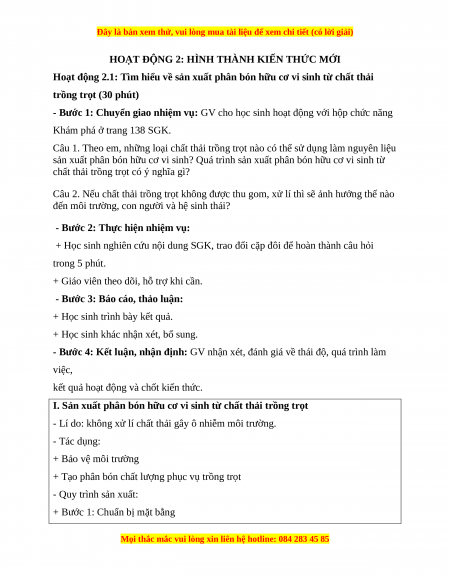 Hoạt động 2.1: Tìm hiểu về sản xuất phân bón hữu cơ vi sinh từ chất thải