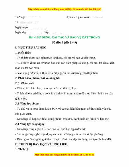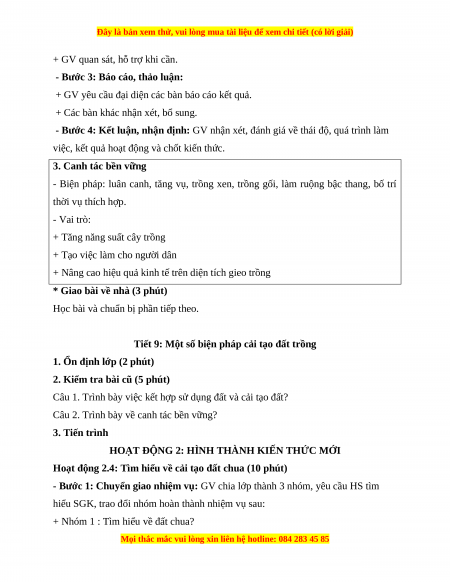 Giáo án Công nghệ 10 (Kết nối tri thức) Bài 4: Sử dụng, bảo vệ và cải tạo đất trồng
