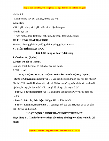 Tiết 8: Sử dụng và bảo vệ đất trồng