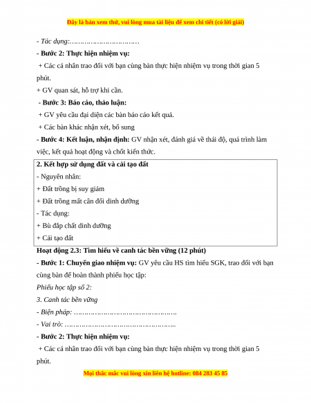Hoạt động 2.2: Tìm hiểu về việc kết hợp sử dụng đất và cải tạo đất (12 phút)