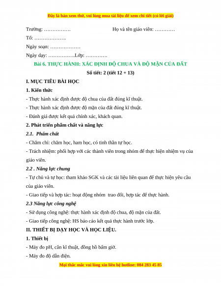 Bài 6. THỰC HÀNH: XÁC ĐỊNH ĐỘ CHUA VÀ ĐỘ MẶN CỦA ĐẤT