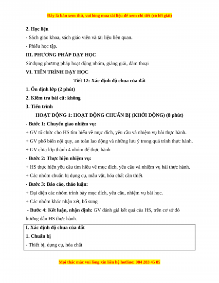 - Thực hành xác định được độ chua của đất đúng kĩ thuật.