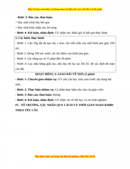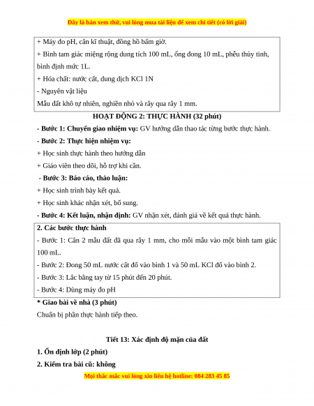 Giáo án Công nghệ 10 (Kết nối tri thức) Bài 6: Thực hành: Xác định độ mặn và độ chua của đất