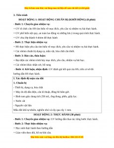 + Các nhóm chuẩn bị dụng cụ, mẫu vật, hóa chất cần thiết.