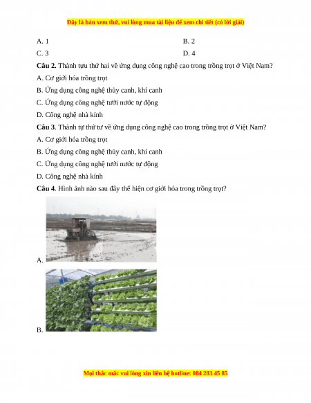Câu 4. Hình ảnh nào sau đây thể hiện cơ giới hóa trong trồng trọt? A. B.