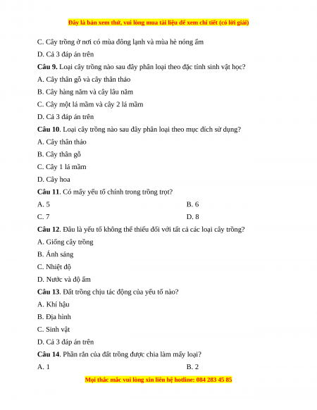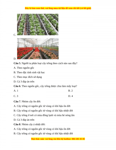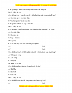 Câu 6. Theo nguồn gốc, cây trồng được chia làm mấy loại? A. 1 B. 2 C. 3 D. 4