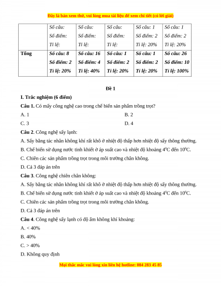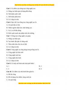 Câu 1. Có mấy công nghệ cao trong chế biến sản phẩm trồng trọt? A. 1 B. 2 C. 3 D. 4