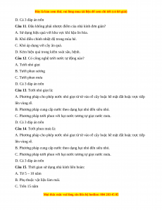 Câu 4. Công nghệ sấy lạnh có độ ẩm không khí khoảng: A. < 40% B. 40% C. > 40% D. Không quy định