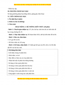 - Bước 1: Chuyển giao nhiệm vụ: GV yêu cầu học sinh tóm tắt các kiến thức đã học trong chương III, IV.