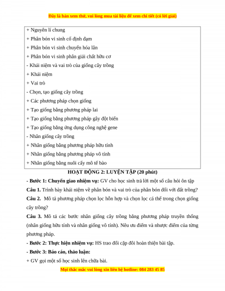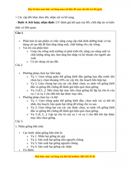 Củng cố kiến thức về phân bón và công nghệ giống cây trồng.