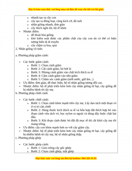 Câu 3. Mô tả các bước nhân giống cây trồng bằng phương pháp truyền thống