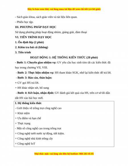 - Giới thiệu về trồng trọt công nghệ cao + Khái niệm + Ưu điểm và hạn chế + Thực trạng