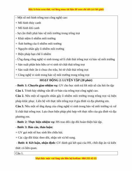Củng cố kiến thức về trồng trọt công nghệ cao và bảo vệ môi trường trong trồng trọt.