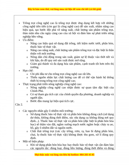 Câu 2. Nêu một số nguyên nhân gây ô nhiễm môi trường trong trồng trọt và biện