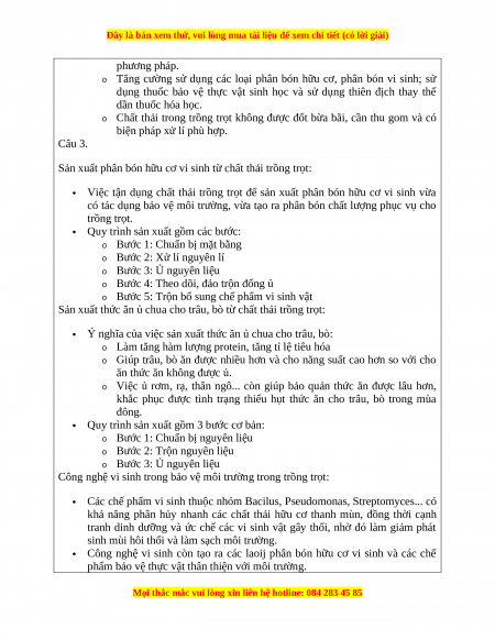 Câu 3. Nêu một số ứng dụng của công nghệ vi sinh trong bảo vệ môi trường và xử