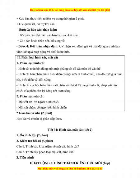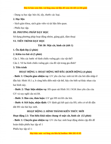 Tiết 30: Mặt cắt, hình cắt (tiết 1)