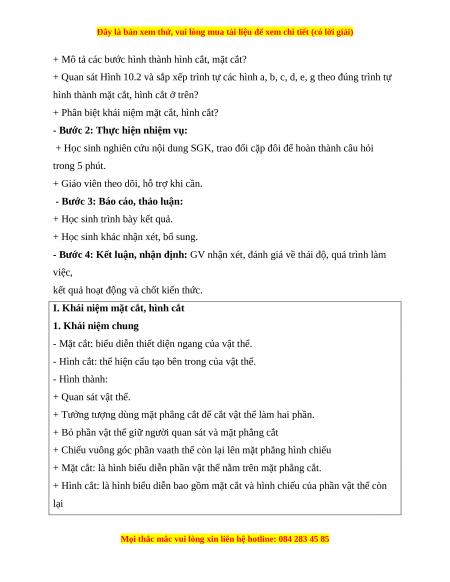 Giáo án Công nghệ 10 Thiết kế Bài 10 (Kết nối tri thức): Hình cắt và mặt cắt