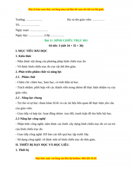 - Sử dụng công nghệ: vẽ được một số hình chiếu trục đo đơn giản.