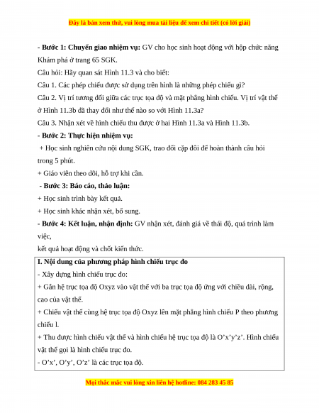 Hoạt động 2.1: Tìm hiểu về nội dung của phương pháp hình chiếu trục đo (17