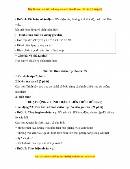 Tiết 35: Hình chiếu trục đo (tiết 2)