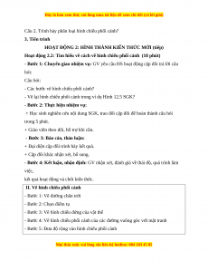 Câu hỏi: Trình bày sự khác nhau giữa hai hình chiếu trục đo mà em đã học? 3. Tiến trình