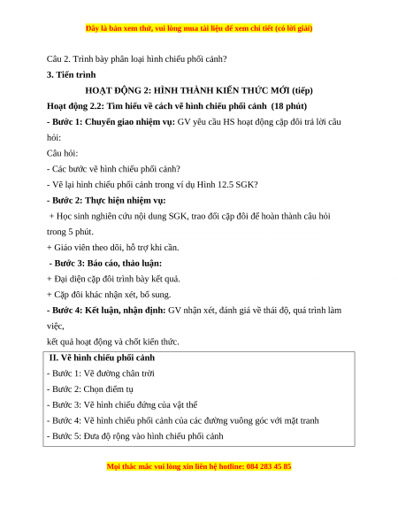 Hoạt động 2.1: Tìm hiểu về nội dung của phương pháp hình chiếu phối cảnh (30 phút)