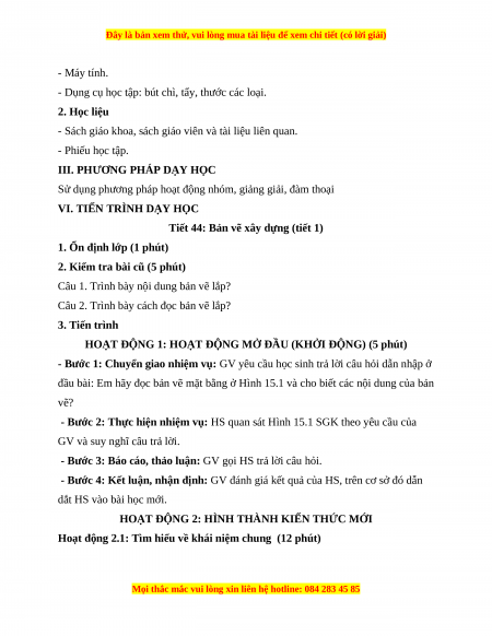 Tiết 44: Bản vẽ xây dựng (tiết 1)