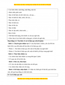 việc, kết quả hoạt động và chốt kiến thức.