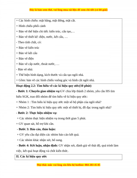 - Nhận thức công nghệ: biết khái niệm bản vẽ xây dựng, các kí hiệu quy ước trên