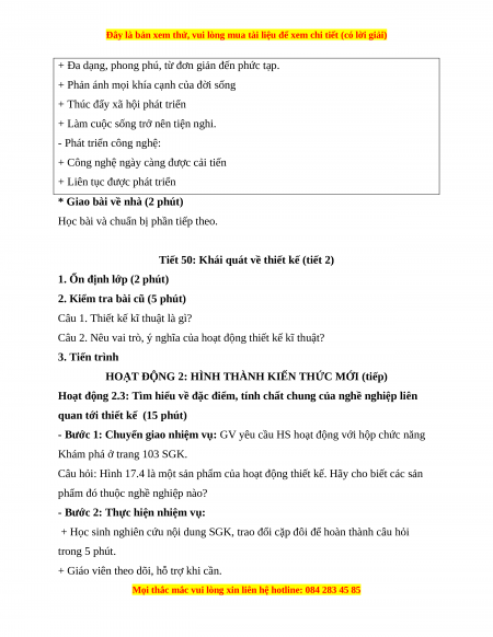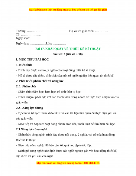 Giáo án Công nghệ 10 Thiết kế Bài 17 (Kết nối tri thức): Khái quát về thiết kế kĩ thuật