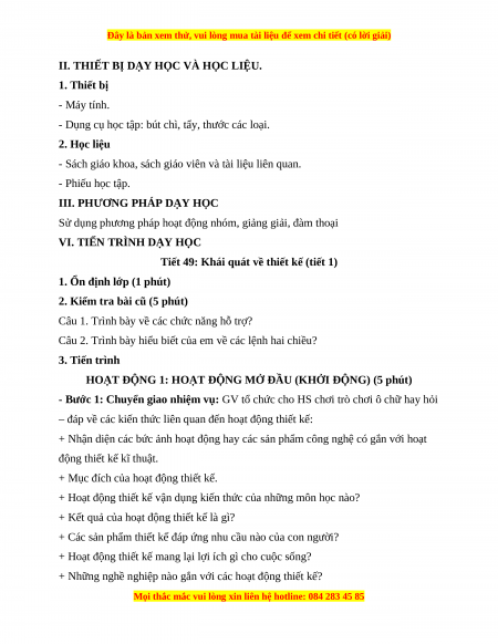 Tiết 49: Khái quát về thiết kế (tiết 1)