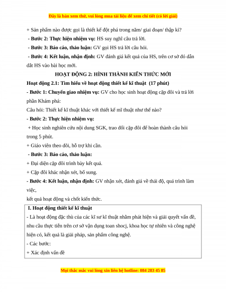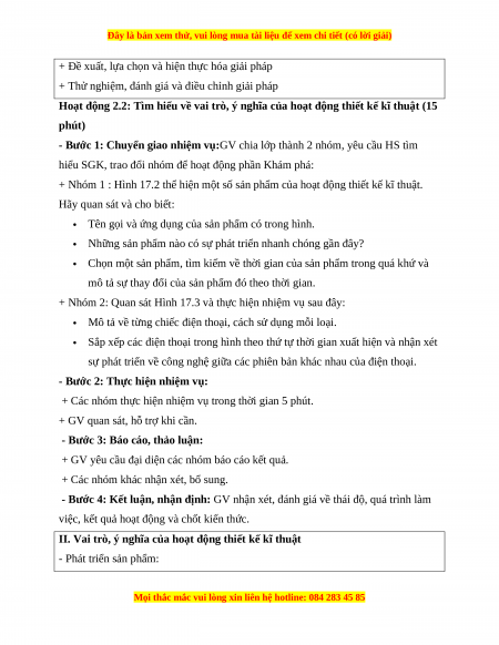 Hoạt động 2.1: Tìm hiểu về hoạt động thiết kế kĩ thuật (17 phút)
