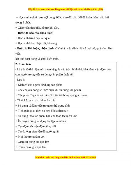 con người trong việc sử dụng sản phẩm thiết kế. - Lưu ý: