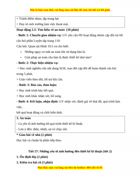Tiết 57: Những yếu tố ảnh hưởng đến thiết kế kĩ thuật (tiết 2)