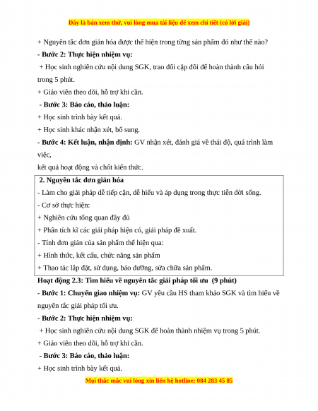 Hoạt động 2.3: Tìm hiểu về nguyên tắc giải pháp tối ưu (9 phút)