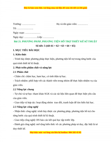 Bài 21. PHƯƠNG PHÁP, PHUƠNG TIỆN HỖ TRỢ THIẾT KẾ KĨ THUẬT