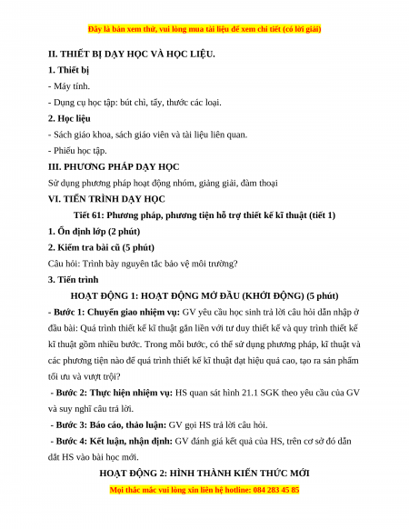 Tiết 61: Phương pháp, phương tiện hỗ trợ thiết kế kĩ thuật (tiết 1)