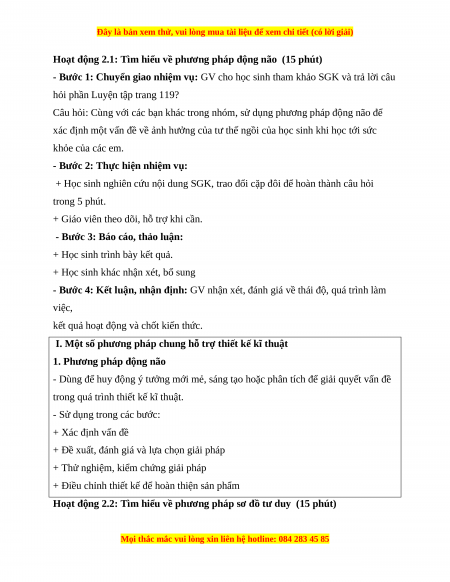 đầu bài: Quá trình thiết kế kĩ thuật gắn liền với tư duy thiết kế và quy trình thiết kế