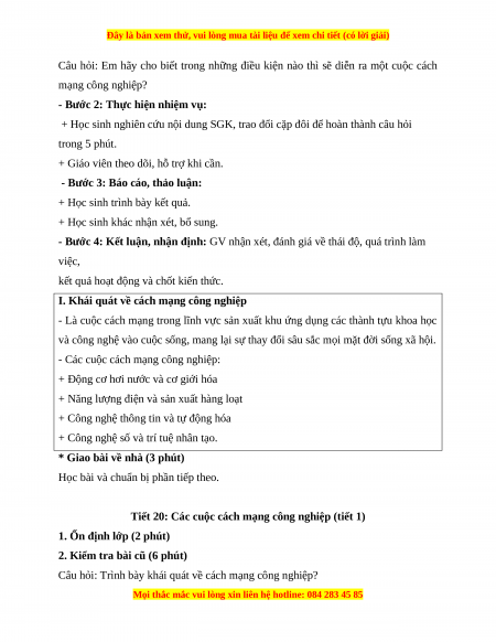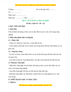 Tiết 20: Các cuộc cách mạng công nghiệp (tiết 1)