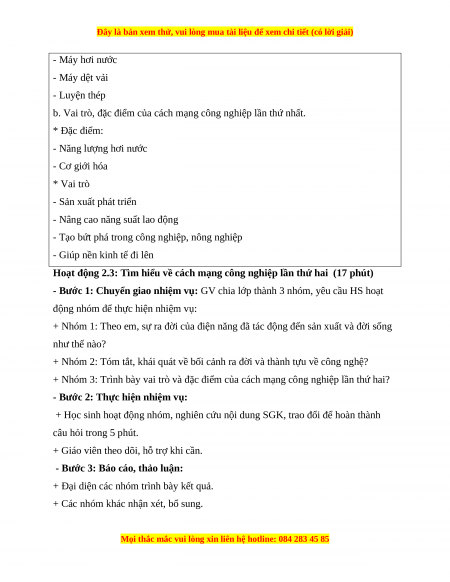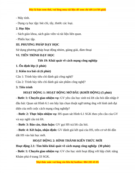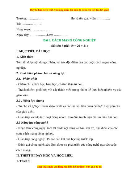 Giáo án Công nghệ 10 Thiết kế Bài 6 (Kết nối tri thức): Cách mạng công nghiệp