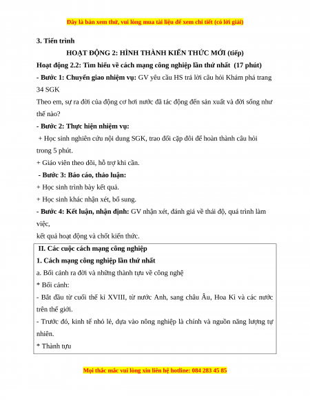 Hoạt động 2.1: Tìm hiểu khái quát về cách mạng công nghiệp (30 phút)
