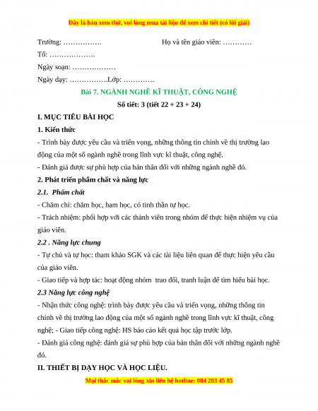 Bài 7. NGÀNH NGHỀ KĨ THUẬT, CÔNG NGHỆ
