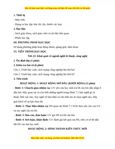 Tiết 22: Khái quát về ngành nghề kĩ thuật, công nghệ