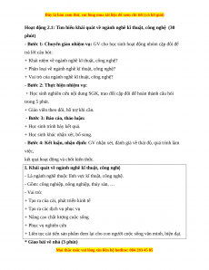 Hoạt động 2.1: Tìm hiểu khái quát về ngành nghề kĩ thuật, công nghệ (30 phút)