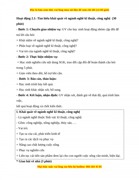 Hoạt động 2.1: Tìm hiểu khái quát về ngành nghề kĩ thuật, công nghệ (30