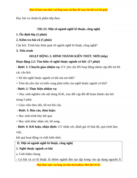 Giáo án Công nghệ 10 Thiết kế Bài 7 (Kết nối tri thức): Ngành nghề kĩ thuật, công nghệ