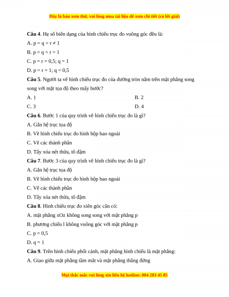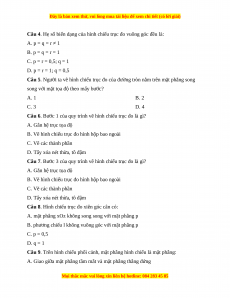 Câu 1. Hình chiếu trục đo có mấy thông số cơ bản? A. 1 B. 2 C. 3 D. 4