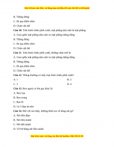 Câu 9. Trên hình chiếu phối cảnh, mặt phẳng hình chiếu là mặt phẳng: