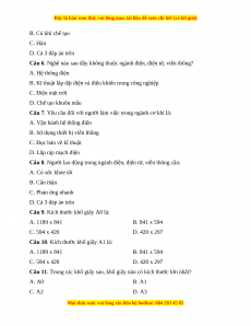 Câu 11. Trong các khổ giấy sau, khổ giấy nào có kích thước lớn nhất? A. A0 B. A1 C. A2 D. A3