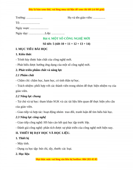 Giáo án Công nghệ 10 Thiết kế (Kết nối tri thức) Bài 4: Một số công nghệ mới